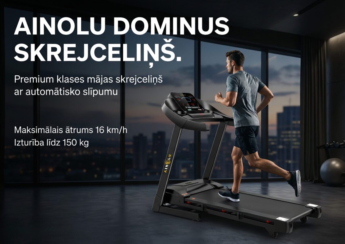 Premium klases mājas skrejceliņš AINOLU – DOMINUS ir mājas skrejceliņš, kas radīts cilvēkiem, kuri nevēlas kompromisus. Tas apvieno profesionālu jaudu, izcilu stabilitāti un modernu vadības sistēmu, radot pieredzi, kas ir līdzvērtīga sporta zāles aprīkojumam. Kluss motors, stabila konstrukcija un augstas kvalitātes amortizācija padara šo skrejceliņu par vienu no labākajiem risinājumiem intensīviem treniņiem mājās.