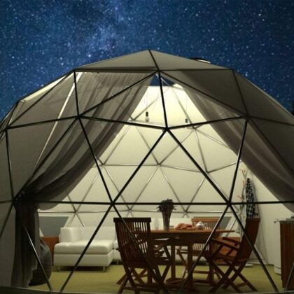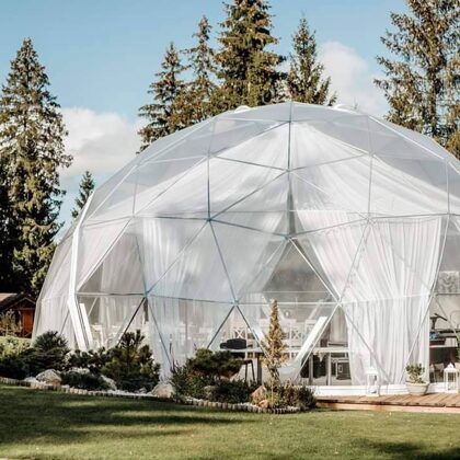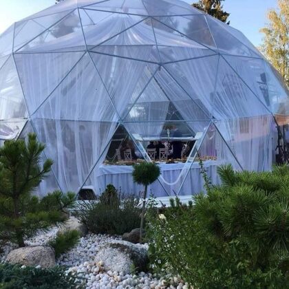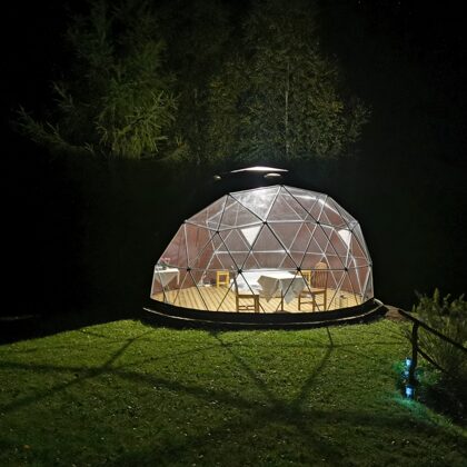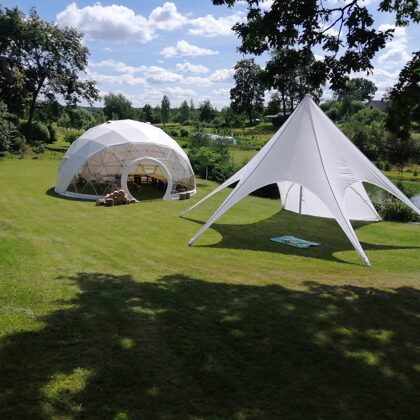 Mūsu kupoli ir izgatavoti no augstvērtīgiem materiāliem, un ir lieliski izmantojami, gan ziemā gan vasarā. Lieliska vieta kur atpūsties un atslēgties no ikdienas steigas. Populārākie izmēri 10m2/15m2/20m2/27m2