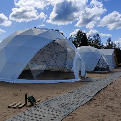 Mūsu kupoli ir izgatavoti no augstvērtīgiem materiāliem, un ir lieliski izmantojami, gan ziemā gan vasarā. Lieliska vieta kur atpūsties un atslēgties no ikdienas steigas. Populārākie izmēri 10m2/15m2/20m2/27m2
