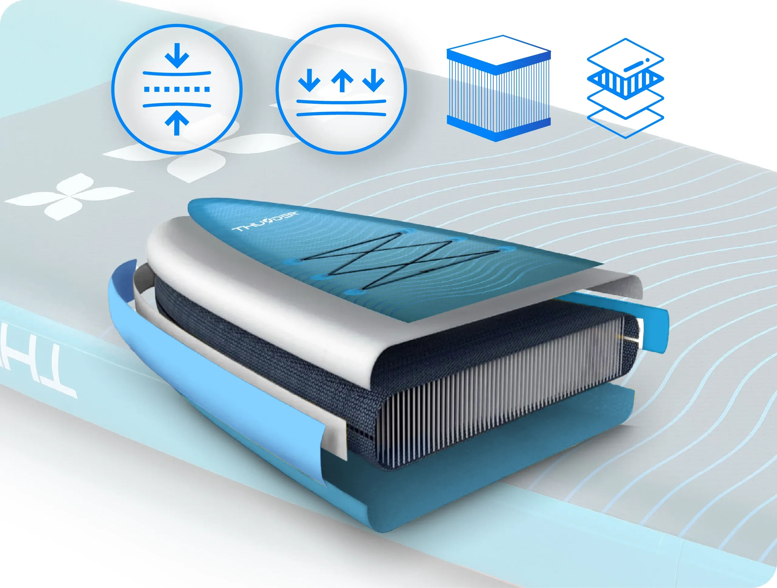 - Прочность на сжатие и растяжение благодаря IDC (сердечнику Drop-stitch Core)