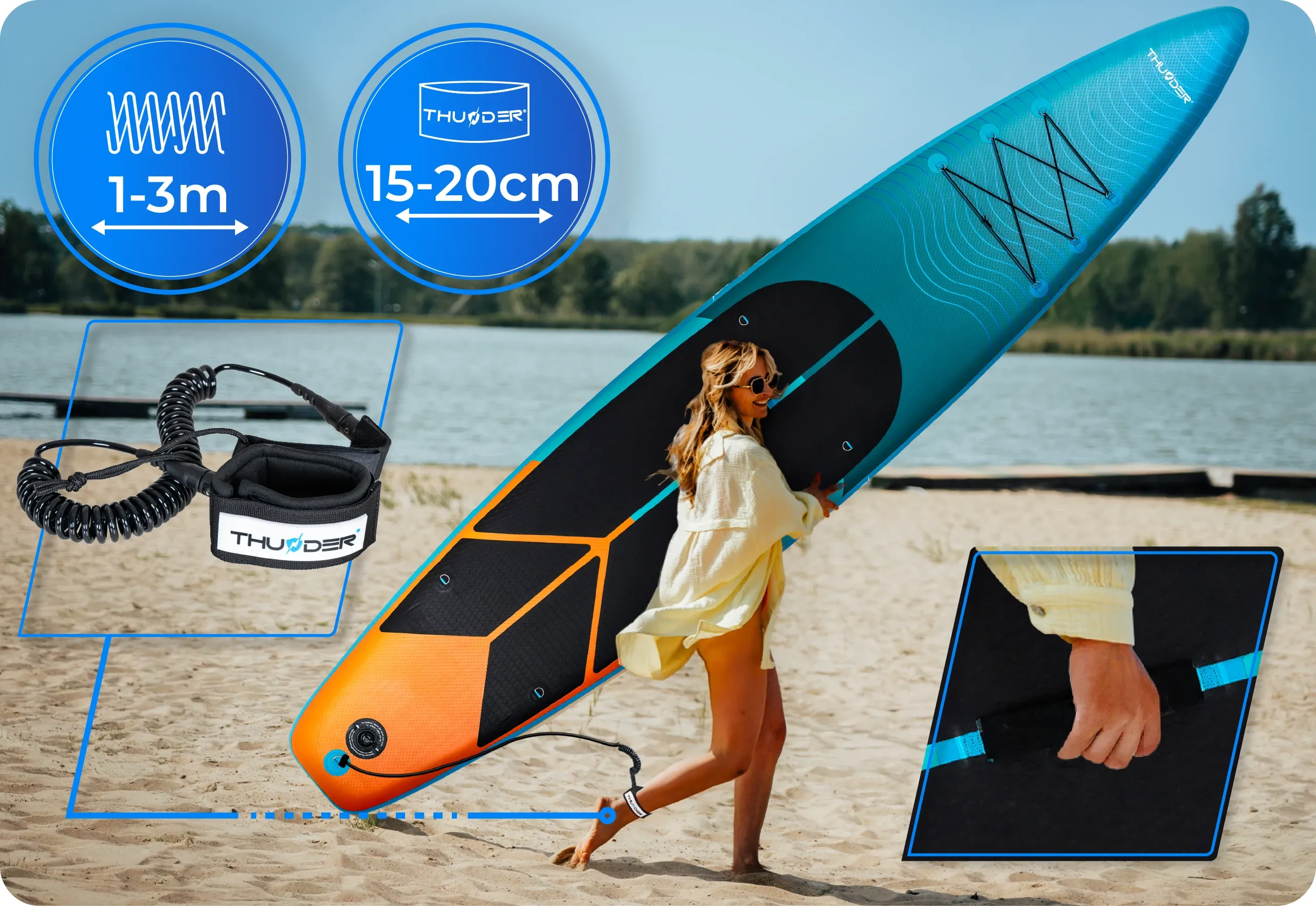 - Ремень безопасности на лодыжке обеспечивает дополнительную безопасность . Даже если вы упадёте в воду, доска не уплывёт далеко.