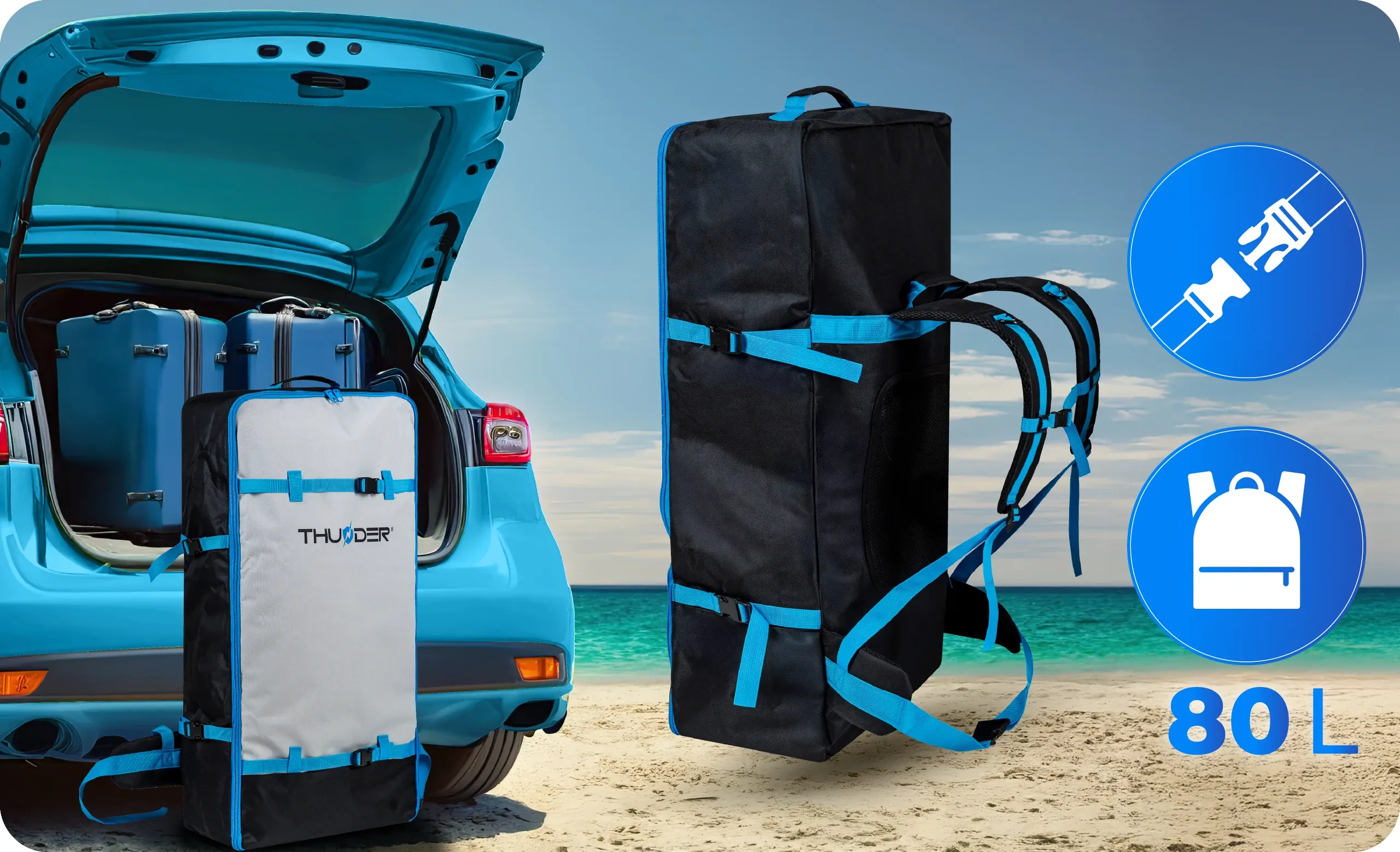 - Хранить и переносить доску и ее аксессуары можно в просторном рюкзаке с современным динамичным дизайном .